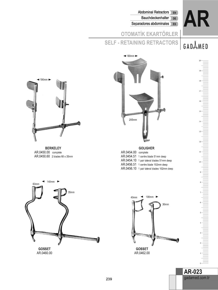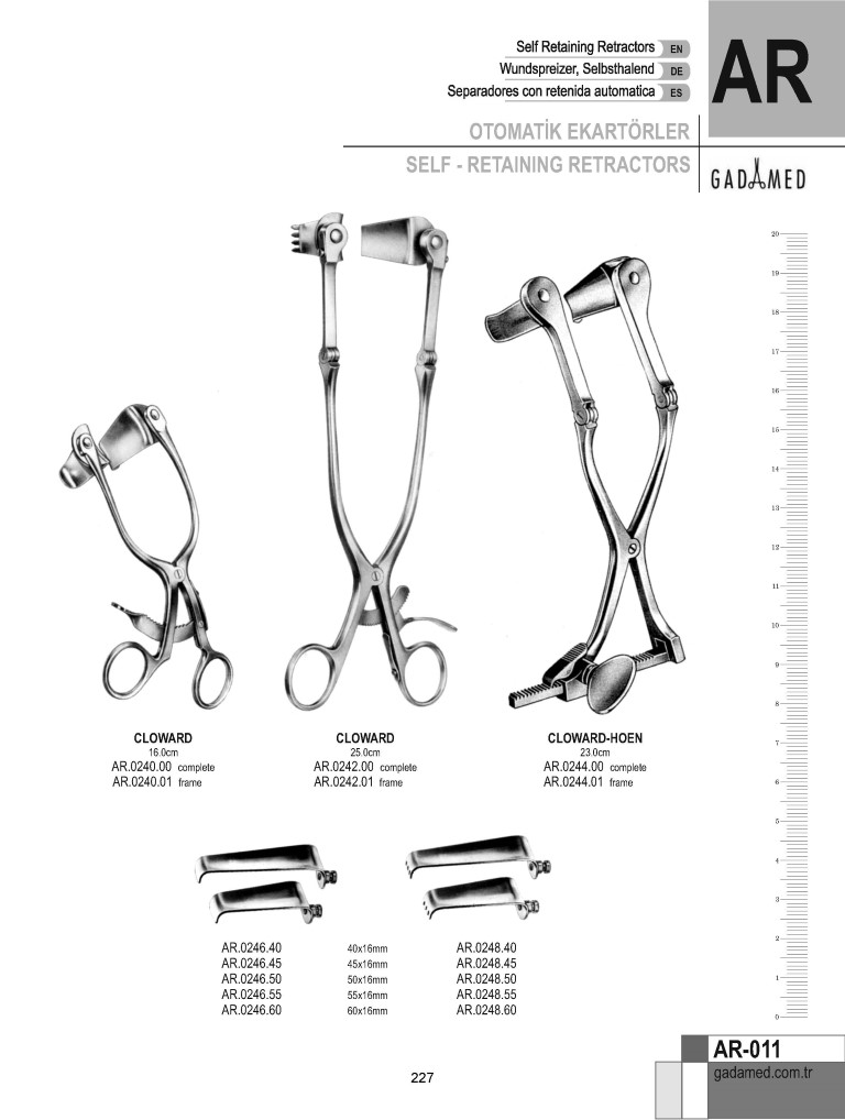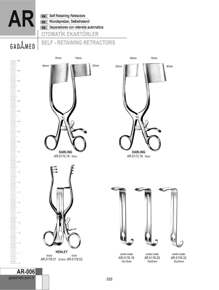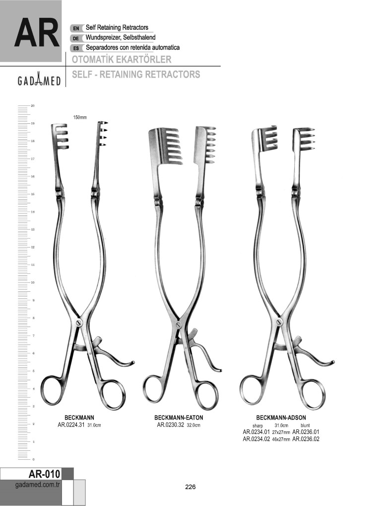 AR.0010.04 8681091028627 Otomatik ekartör, Logan model 3X3T, 4CM AR.0014.06 8681091028634 Otomatik ekartör, Buckley model cilt için keskin 3X3PR. 6CM AR.0020.08 8681091028641 Otomatik ekartör, cilt için 8.0 cm AR.0030.07 8681091028658 Otomatik ekartör, Alm model keskin 7CM AR.0030.10 8681091028665 Otomatik ekartör, Alm model keskin 10CM AR.0032.07 8681091028672 Otomatik ekartör, Alm model künt 7CM AR.0032.10 8681091028689 Otomatik ekartör, Alm model künt 10CM AR.0040.10 8681090891703 Otomatik ekartör, Kaupp model keskin 10.0 cm AR.0042.10 8681091028696 Otomatik ekartör, Kaupp model künt 10.0 cm AR.0050.05 8681091028702 Otomatik ekartör, Finsen model Keskin 3X3PR. 5CM AR.0050.07 8681091028719 Otomatik ekartör, Finsen model Keskin 7CM AR.0052.05 8681091028726 Otomatik ekartör, Finsen model künt 3X3PR. 5CM AR.0052.07 8681091028733 Otomatik ekartör, Finsen model künt 3X3PR. 7CM AR.0054.05 8681091028740 Otomatik ekartör, Finsen model Keskin W/SCREW 5CM AR.0054.07 8681091028757 Otomatik ekartör, Finsen model Keskin 7CM AR.0056.05 8681091028764 Otomatik ekartör, Finsen model künt W/SCREW 5CM AR.0056.07 8681091028771 Otomatik ekartör, Finsen model künt 7CM AR.0060.10 8681091028788 Otomatik ekartör,Jansen model keskin 3X3PR. 10CM AR.0062.10 8681091028795 Otomatik ekartör,Jansen model künt 3X3PR. 10CM AR.0070.00 8681091028801 Otomatik ekartör,Vickers model RİNG MODEL 5CM AR.0072.00 8681091028818 Otomatik ekartör, Vickers model komple AR.0072.01 8681091028825 Otomatik ekartör, Vickers model 12X10MM AR.0072.02 8681091028832 Otomatik ekartör, Vickers model 10X18MM AR.0074.00 8681091028849 Otomatik ekartör, Vickers model 10X12mm AR.0076.00 8681091028856 Otomatik ekartör, Vickers model UNİVERSAL HAND & CARPAL AR.0080.10 8681091028863 Otomatik ekartör, Weitlaner model keskin 2X3PR. 11.5CM AR.0082.10 8681091028870 Otomatik ekartör, Weitlaner model künt 2X3PR. 11.5CM AR.0084.13 8681091028887 Otomatik ekartör, Weitlaner model 3X4PR. SHARP 13CM AR.0084.14 8681091028894 Otomatik ekartör, Weitlaner model 3X4PR. SHARP 14CM AR.0084.16 8681091028900 Otomatik ekartör, Weitlaner model 3X4PR. SHARP 16.5CM AR.0086.13 8681091028917 Otomatik ekartör, Weitlaner model 3X4PR. BLUNT 13CM AR.0086.14 8681091028924 Otomatik ekartör, Weitlaner model 3X4PR. BLUNT 14CM AR.0086.16 8681091028931 Otomatik ekartör, Weitlaner model 3X4PR. BLUNT 16.5CM AR.0088.13 8681091028948 Otomatik ekartör, Weitlaner Wullstein model 3X4PR. SH. 13CM AR.0089.13 8681091028955 Otomatik ekartör, Weitlaner Wullstein model 3X4PR. BL. 13CM AR.0090.13 8681091028962 Otomatik ekartör, Weitlaner Wullstein model 3X3PR. SH. 13CM AR.0092.13 8681091028979 Otomatik ekartör, Weitlaner Wullstein model 3X3PR. BL. 13CM AR.0094.20 8681091028986 Otomatik ekartör, Weitlaner model 3X4PR. keskin 20CM AR.0094.23 8681091028993 Otomatik ekartör, Weitlaner model 3X4PR. keskin 23CM AR.0094.26 8681091029006 Otomatik ekartör, Weitlaner model 3X4PR. keskin 26CM AR.0096.20 8681091029013 Otomatik ekartör, Weitlaner model 3X4PR. keskin 20CM AR.0096.23 8681091029020 Otomatik ekartör, Weitlaner model 3X4PR. keskin 23CM AR.0096.26 8681091029037 Otomatik ekartör, Weitlaner model 3X4PR. keskin 26CM AR.0100.20 8681091029044 Otomatik ekartör, Travers model 4X5PR. 19X25 & 25X25MM, BL. 20CM AR.0100.21 8681091029051 Otomatik ekartör, Travers model 4X5PR. 19X25 & 25X25MM BL 21.5CM AR.0104.13 8681091029068 Otomatik ekartör, Weitlaner baby model SOLİD BLADE 13CM AR.0110.13 8681091029075 Otomatik ekartör, Milligan model 3X3PR. BLUNT 13CM AR.0114.13 8681091029082 Otomatik ekartör, west model keskin 13CM AR.0116.13 8681091029099 Otomatik ekartör, west model künt 13CM AR.0120.19 8681091029105 Otomatik ekartör, Anderson-adson model keskin 4X4PR. 19.5CM AR.0124.13 8681091029112 Otomatik ekartör, Plester model 2X2PR. SHARP 13CM AR.0126.13 8681091029129 Otomatik ekartör, Plester model 2X2PR. BLUNT 13CM AR.0130.11 8681091029136 Otomatik ekartör, Plester model 1X2PR. LEFT 11CM AR.0132.11 8681091029143 Otomatik ekartör, Plester model 1X2PR. RİGHT 11CM AR.0140.14 8681091029150 Otomatik ekartör, Scalp Contour model 3X4PR. keskin 14CM AR.0142.14 8681091029167 Otomatik ekartör, Scalp Contour model 3X4PR. künt 14CM AR.0150.16 8681091029174 Otomatik ekartör, Mollison model 4X4PR. SH 16.5CM AR.0152.15 8681091029181 Otomatik ekartör, Mollison model keskin 15CM AR.0156.18 8681091029198 Otomatik ekartör, Rigby model, Vajinal tip 18.0 cm AR.0160.17 8681091029204 Otomatik ekartör, Mayo-Adams model 17.0 cm AR.0162.17 8681091029211 Otomatik ekartör, Mayo-Adams model Central Bleyt 17CM AR.0170.18 8681091029228 Otomatik ekartör, Darling model CVD 57X38MM 18CM AR.0172.18 8681091029235 Otomatik ekartör, Darling modelCVD 57X38MM 18CM AR.0176.01 8681091029242 Otomatik ekartör, Henley model 3X4PR. SHARP 16.5CM AR.0176.02 8681091029259 Otomatik ekartör, Henley model 3X4PR. BLUNT 16.5CM AR.0176.19 8681091029266 Otomatik ekartör, Henley model bleyt 16X19MM AR.0176.25 8681091029273 Otomatik ekartör, Henley model bleyt16X25MM AR.0176.32 8681091029280 Otomatik ekartör, Henley model bleyt 16X32MM AR.0180.13 8681091029297 Otomatik ekartör, Gelpi-Loktite model 13CM AR.0182.09 8681091029303 Otomatik ekartör, Gelpi model 9CM AR.0182.14 8681091029310 Otomatik ekartör, Gelpi model 14CM AR.0182.16 8681091029327 Otomatik ekartör, Gelpi model 16CM AR.0182.18 8681091029334 Otomatik ekartör, Gelpi model 18CM AR.0186.18 8681091029341 Otomatik ekartör, Gelpi model stoplu 18CM AR.0190.15 8681091029358 Otomatik ekartör, Gelpi Seiletz model 15CM AR.0194.18 8681091029365 Otomatik ekartör, Gelpi Loktite model18CM AR.0196.18 8681091029372 Otomatik ekartör, Gelpi Loktite model 18CM AR.0200.22 8681091029389 Otomatik ekartör, Norfolk-Norwich model 4X5PR. BLUNT 51X215MM AR.0204.01 8681091029396 Otomatik ekartör, 6X6PR. SH, 27CM AR.0204.02 8681091029402 Otomatik ekartör, 6X6PR. SH, 27CM AR.0210.13 8681091029419 Otomatik ekartör, Adson model 3X4PR. keskin, 13CM 