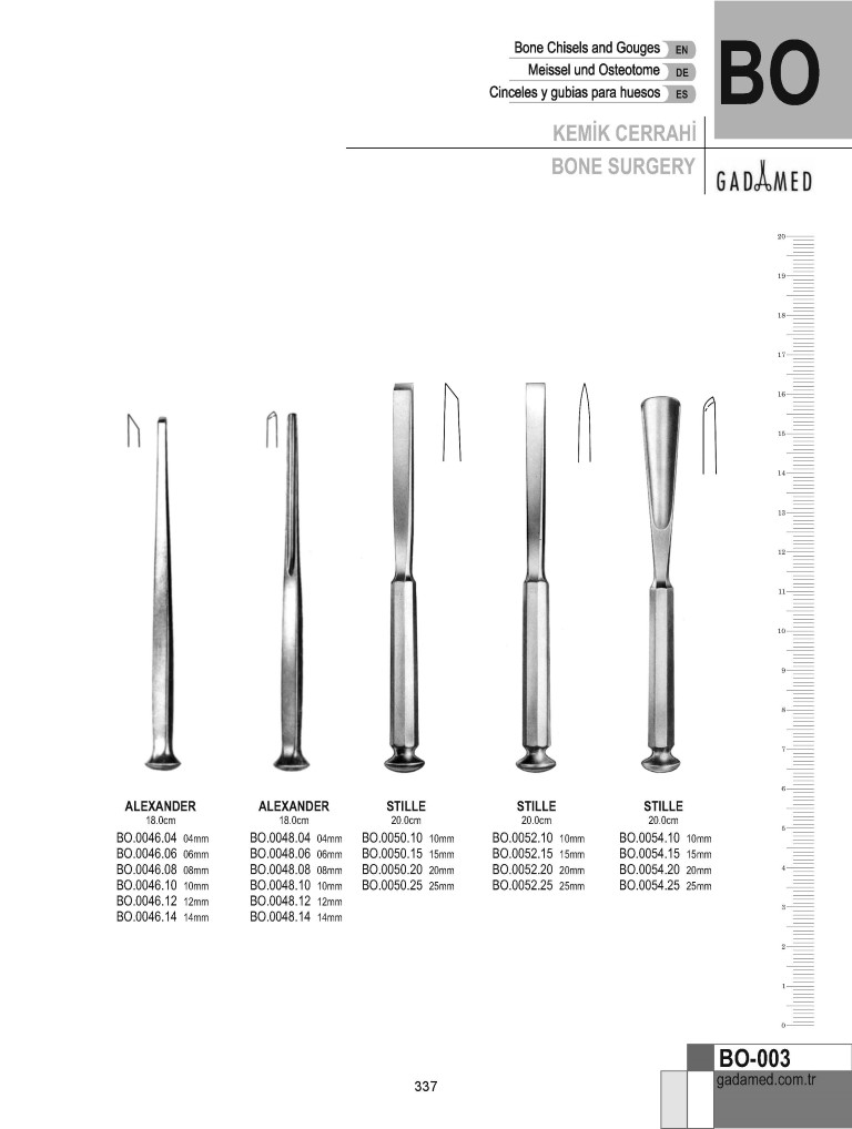 BO.0010.08 8681091043484 KEMİK OSTEOMOMU 8MM 13.5CM BO.0010.10 8681091043491 KEMİK OSTEOMOMU 10MM 13.5CM BO.0010.12 8681091043507 KEMİK OSTEOMOMU 12MM 13.5CM BO.0010.14 8681091043514 KEMİK OSTEOMOMU 14MM 13.5CM BO.0010.16 8681091043521 KEMİK OSTEOMOMU 16MM 13.5CM BO.0012.08 8681091043538 KEMİK KESKİSİ 8MM 13.5CM BO.0012.10 8681091043545 KEMİK KESKİSİ 10MM 13.5CM BO.0012.12 8681091043552 KEMİK KESKİSİ 12MM 13.5CM BO.0012.14 8681091043569 KEMİK KESKİSİ 14MM 13.5CM BO.0012.16 8681091043576 KEMİK KESKİSİ 16MM 13.5CM BO.0014.08 8681091043583 KEMİK OYUCU 8MM 13.5CM BO.0014.10 8681091043590 KEMİK OYUCU 10MM 13.5CM BO.0014.12 8681091043606 KEMİK OYUCU 12MM 13.5CM BO.0014.14 8681091043613 KEMİK OYUCU 14MM 13.5CM BO.0014.16 8681091043620 KEMİK OYUCU 16MM 13.5CM BO.0020.02 8681091043637 Kemik Keskisi, Partsch Model, 2mm 13,5 cm BO.0020.03 8681091043644 Kemik Keskisi, Partsch Model, 3mm 13,5 cm BO.0020.04 8681091043651 Kemik Keskisi, Partsch Model, 4mm 13,5 cm BO.0020.05 8681091043668 Kemik Keskisi, Partsch Model, 5mm 13,5 cm BO.0020.06 8681091043675 Kemik Keskisi, Partsch Model, 6mm 13,5 cm BO.0022.02 8681091043682 Kemik Keskisi, Partsch Model, 2mm 17 cm BO.0022.03 8681091043699 Kemik Keskisi, Partsch Model, 3mm 17 cm BO.0022.04 8681091043705 Kemik Keskisi, Partsch Model, 4mm 17 cm BO.0022.05 8681091043712 Kemik Keskisi, Partsch Model, 5mm 17 cm BO.0022.06 8681091043729 Kemik Keskisi, Partsch Model, 6mm 17 cm BO.0024.02 8681091043736 Kemik Guj, Partsch Model, 2mm 13.5cm BO.0024.03 8681091043743 Kemik Guj, Partsch Model, 3mm 13.5cm BO.0024.04 8681091043750 Kemik Guj, Partsch Model, 4mm 13.5cm BO.0024.05 8681091043767 Kemik Guj, Partsch Model, 5mm 13.5cm BO.0024.06 8681091043774 Kemik Guj, Partsch Model, 6mm 13.5cm BO.0026.02 8681091043781 Kemik Guj, Partsch Model, 2mm 17 cm BO.0026.03 8681091043798 Kemik Guj, Partsch Model, 3mm 17 cm BO.0026.04 8681091043804 Kemik Guj, Partsch Model, 4mm 17 cm BO.0026.05 8681091043811 Kemik Guj, Partsch Model, 5mm 17 cm BO.0026.06 8681091043828 Kemik Guj, Partsch Model, 6mm 17 cm BO.0030.01 8681091043835 Kemik Guj, Düz, Buck Gramcko Model, 11 cm BO.0030.02 8681091043842 Kemik Guj, Eğri, Buck Gramcko Model, 11 cm BO.0032.01 8681091043859 Kemik Guj, Eğri (Sağ), Buck Gramcko Model,10 cm BO.0032.02 8681091043866 Kemik Guj, Eğri (Sol) , Buck Gramcko Model, 10 cm BO.0040.02 8681091043873 Kemik Osteotome'u, Buckley Model, 2mm, 16cm BO.0040.03 8681091043880 Kemik Osteotome'u, Buckley Model, 3mm, 16cm BO.0040.04 8681091043897 Kemik Keskisi, Buckley Model, 4mm 16 cm BO.0042.02 8681091043903 Kemik Guj, Buckley Model, 2mm 16 cm BO.0042.03 8681091043910 Kemik Guj, Buckley Model, 3mm 16 cm BO.0042.04 8681091043927 Kemik Guj, Buckley Model, 4mm 16 cm BO.0046.04 8681091043934 Kemik Keskisi,Alexander Model, 4mm 18 cm BO.0046.06 8681091043941 Kemik Keskisi,Alexander Model, 6mm 18 cm BO.0046.08 8681091043958 Kemik Keskisi,Alexander Model, 8mm 18 cm BO.0046.10 8681091043965 Kemik Keskisi,Alexander Model, 10mm 18 cm BO.0046.12 8681091043972 Kemik Keskisi,Alexander Model, 12mm 18 cm BO.0046.14 8681091043989 Kemik Keskisi,Alexander Model, 14mm 18 cm BO.0048.04 8681091043996 Kemik Guj, Alexander Model, 4mm 18 cm BO.0048.06 8681091044009 Kemik Guj, Alexander Model, 6mm 18 cm BO.0048.08 8681091044016 Kemik Guj, Alexander Model, 8mm 18 cm BO.0048.10 8681091044023 Kemik Guj, Alexander Model, 10mm 18 cm BO.0048.12 8681091044030 Kemik Guj, Alexander Model, 12mm 18 cm BO.0048.14 8681091044047 Kemik Guj, Alexander Model, 14mm 18 cm BO.0050.10 8681091044054 Kemik Keskisi,Stille Model, 10mm 20cm (MACEVEN) BO.0050.15 8681091044061 Kemik Keskisi,Stille Model, 15mm 20cm (MACEVEN) BO.0050.20 8681091044078 Kemik Keskisi,Stille Model, 20mm 20cm (MACEVEN) BO.0050.25 8681091044085 Kemik Keskisi,Stille Model, 25mm 20cm (MACEVEN) BO.0052.10 8681091044092 Kemik Osteotome'u,Stille Model, 10mm 20cm (MACEVEN) BO.0052.15 8681091044108 Kemik Osteotome'u,Stille Model, 15mm 20cm (MACEVEN) BO.0052.20 8681091044115 Kemik Osteotome'u,Stille Model, 20mm 20cm (MACEVEN) BO.0052.25 8681091044122 Kemik Osteotome'u,Stille Model, 25mm 20cm (MACEVEN) BO.0054.10 8681091044139 Kemik Gouge, Stille Model, 10mm 20cm BO.0054.15 8681091044146 Kemik Gouge, Stille Model, 15mm 20cm BO.0054.20 8681091044153 Kemik Gouge, Stille Model, 20mm 20cm BO.0054.25 8681091044160 Kemik Gouge, Stille Model, 25mm 20cm BO.0060.06 8681091044177 Kemik Osteotome'u Düz, Smith Peterson Model, 6 mm, 20cm BO.0060.09 8681091044184 Kemik Osteotome'u Düz, Smith Peterson Model, 9 mm, 20cm BO.0060.13 8681091044191 Kemik Osteotome'u Düz, Smith Peterson Model, 13 mm, 20cm BO.0060.16 8681091044207 Kemik Osteotome'u Düz, Smith Peterson Model, 16 mm, 20cm BO.0060.19 8681091044214 Kemik Osteotome'u Düz, Smith Peterson Model, 19 mm, 20cm BO.0060.25 8681091044221 Kemik Osteotome'u Düz, Smith Peterson Model, 25 mm, 20cm BO.0060.32 8681091044238 Kemik Osteotome'u Düz, Smith Peterson Model, 32 mm, 20cm BO.0061.06 8681091044245 Kemik Osteotome'u Eğri, Smith Peterson Model, 6 mm, 20cm BO.0061.09 8681091044252 Kemik Osteotome'u Eğri, Smith Peterson Model, 9 mm, 20cm BO.0061.13 8681091044269 Kemik Osteotome'u Eğri, Smith Peterson Model, 13 mm, 20cm BO.0061.16 8681091044276 Kemik Osteotome'u Eğri, Smith Peterson Model, 16 mm, 20cm BO.0061.19 8681091044283 Kemik Osteotome'u Eğri, Smith Peterson Model, 19 mm, 20cm BO.0061.25 8681091044290 Kemik Osteotome'u Eğri, Smith Peterson Model, 25 mm, 20cm BO.0061.32 8681091044306 Kemik Osteotome'u Eğri, Smith Peterson Model, 32 mm, 20cm BO.0064.06 8681091044313 Kemik Gouge Düz, Smith Peterson Model, 6mm 20cm BO.0064.09 8681091044320 Kemik Gouge Düz, Smith Peterson Model, 9mm 20cm BO.0064.13 8681091044337 Kemik Gouge Düz, Smith Peterson Model, 13mm 20cm BO.0064.16 8681091044344 Kemik Gouge Düz, Smith Peterson Model, 16mm 20cm BO.0064.19 8681091044351 Kemik Gouge Düz, Smith Peterson Model, 19mm 20cm BO.0064.25 8681091044368 Kemik Gouge Düz, Smith Peterson Model, 25mm 20cm BO.0064.32 868109104437