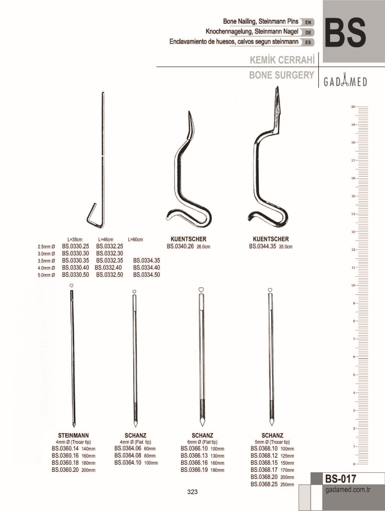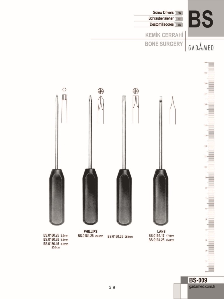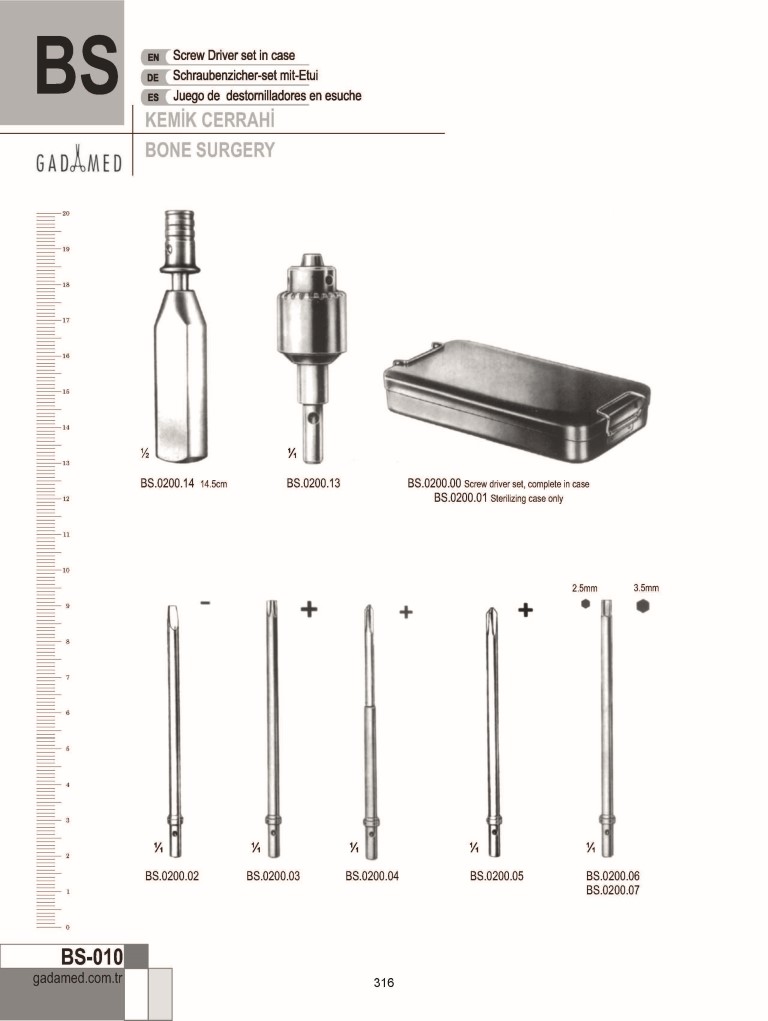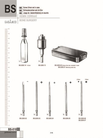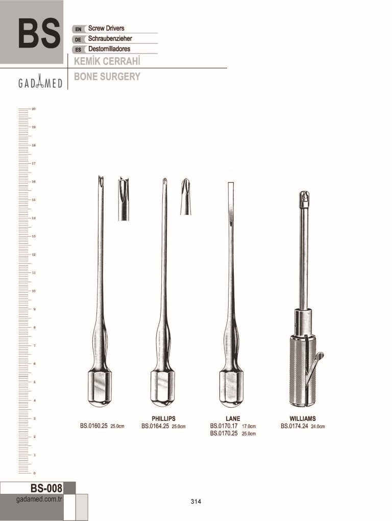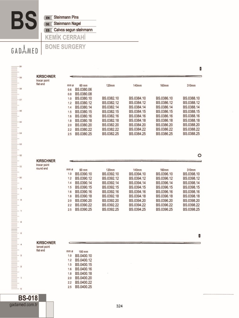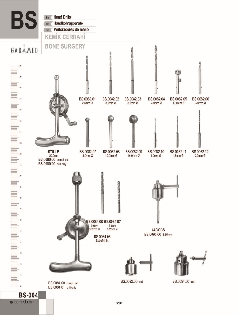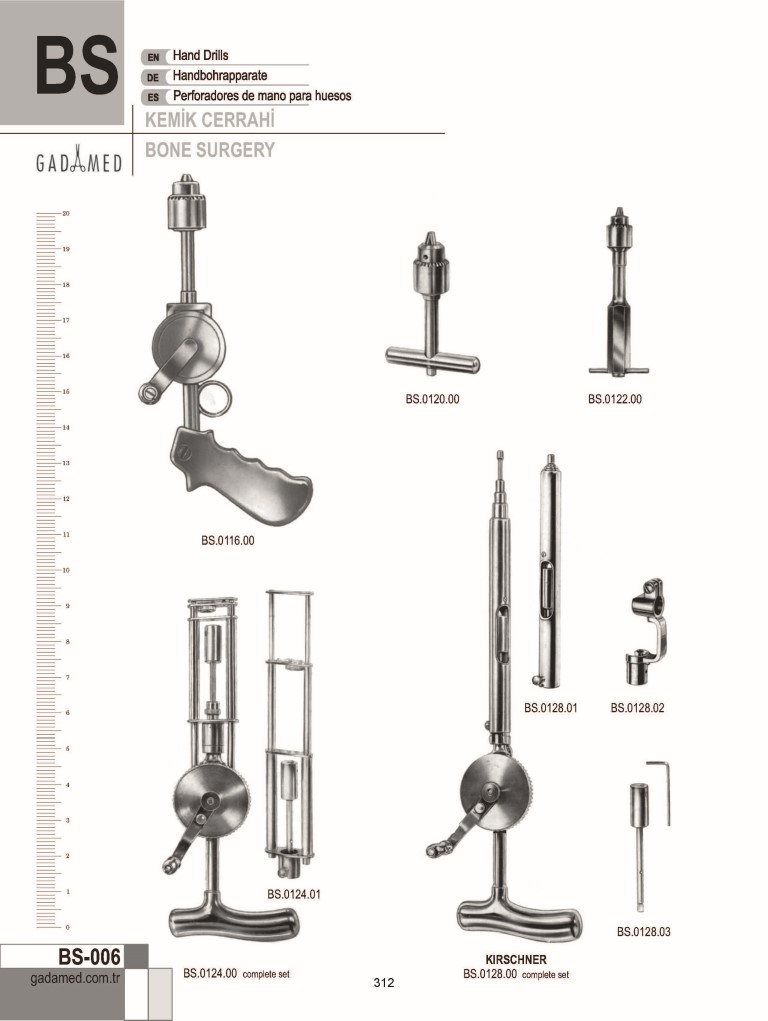 BS.0010.27 8681091039876 CHARRIERE AMPÜTASYON TESTERESİ 27CM BS.0010.30 8681091039883 CHARRIERE AMPÜTASYON TESTERESİ 30CM BS.0010.34 8681091039890 CHARRIERE AMPÜTASYON TESTERESİ 34CM BS.0014.31 8681091039906 SATTERLEE AMPÜTASYON TESTERESİ 31CM BS.0020.27 8681091039913 CHARRIERE AMPÜTASYON TESTERESİ 27CM BS.0020.30 8681091039920 CHARRIERE AMPÜTASYON TESTERESİ 30CM BS.0024.31 8681091039937 SATTERLEE AMPÜTASYON TESTERESİ 31CM BS.0030.23 8681091039944 ORDU TİPİ AMPÜTASYON TESTERESİ 23CM BS.0034.19 8681091039951 ORDU TİPİ AMPÜTASYON TESTERESİ 19CM BS.0040.12 8681091039968 CHARRIERE AMPÜTASYON TESTERESİ İÇİN YEDEK BIÇAK 12MM BS.0040.15 8681091039975 CHARRIERE AMPÜTASYON TESTERESİ İÇİN YEDEK BIÇAK 15MM BS.0040.18 8681091039982 CHARRIERE AMPÜTASYON TESTERESİ İÇİN YEDEK BIÇAK 18MM BS.0040.35 8681091039999 CHARRIERE AMPÜTASYON TESTERESİ 35CM BS.0044.03 8681091040001 YEDEK BIÇAK 3MM, CHARRIERE TESTERE İÇİN BS.0044.05 8681091040018 YEDEK BIÇAK 5MM, CHARRIERE TESTERE İÇİN BS.0044.07 8681091040025 YEDEK BIÇAK 7MM, CHARRIERE TESTERE İÇİN BS.0044.39 8681091040032 HELFERİCH - BİER AMPÜTASYON TESTERESİ 39CM BS.0050.20 8681091040049 LİNDEMANN RESEKSİYON TESTERESİ 20CM BS.0054.23 8681091040056 LANGENBECK PARMAK TESTERESİ 23CM BS.0060.06 8681091040063 KÜNT TESTERE İÇİN YEDEK BIÇAK 6MM BS.0060.08 8681091040070 KÜNT TESTERE İÇİN YEDEK BIÇAK 8MM BS.0060.12 8681091040087 KÜNT TESTERE İÇİN YEDEK BIÇAK 12MM BS.0060.15 8681091040094 KÜNT TESTERE İÇİN YEDEK BIÇAK 15MM BS.0060.18 8681091040100 KÜNT TESTERE İÇİN YEDEK BIÇAK 18MM BS.0060.39 8681091040117 KÜNT AMPÜTASYON TESTERESİ 39CM BS.0070.00 8681091040124 24CM UÇ İLE STILLE SHERMAN EL MATKABI SET BS.0070.24 8681091040131 YALNIZCA 24CM STİLLER SHERMAN EL MATKABI BS.0072.25 8681091040148 HELEZON MATKAP UCU 2.5MM BS.0072.30 8681091040155 HELEZON MATKAP UCU 3MM BS.0072.35 8681091040162 HELEZON MATKAP UCU 3.5MM BS.0074.00 8681091040179 HUDSON BRACE 27CM SET BS.0074.27 8681091040186 HUDSON YALNIZCA ATEL 27CM BS.0076.01 8681091040193 HUDSON KONİK BUR. 9.0MM BS.0076.02 8681091040209 HUDSON KONİK BUR. 14.0MM BS.0076.03 8681091040216 HUDSON KÜRESEL BUR 16.0MM BS.0076.04 8681091040223 HUDSON KÜRESEL BUR 22.0MM BS.0076.05 8681091040230 CUSHING DÜZ PERFORATOR 14MM BS.0076.06 8681091040247 HUDSON ATEL İÇİN ADSON MATKAP 2MM BS.0076.07 8681091040254 HUDSON ATEL İÇİN MCKENZIE MATKAP UCU 13MM BS.0076.08 8681091040261 HUDSON ATEL İÇİN ERRİCO MATKAP UCU 16MM BS.0076.09 8681091040278 HUDSON UZATMA PARÇASI (ATEL İÇİN) BS.0080.00 8681091040285 STILLE KEMİK EL MATKABI 20CM SET DELGİLER İLE BS.0080.20 8681091040292 YALNIZCA STILLE EL MATKABI BS.0082.01 8681091040308 HELEZON MATKAP 2.5MM BS.0082.02 8681091040315 HELEZON MATKAP 3.0MM BS.0082.03 8681091040322 HELEZON MATKAP 3.5MM BS.0082.04 8681091040339 HELEZON MATKAP 4.0MM BS.0082.05 8681091040346 KÜRESEL BUR. 10.0MM BS.0082.06 8681091040353 KÜRESEL BUR. 5.0MM BS.0082.07 8681091040360 KÜRESEL BUR. 8.0MM BS.0082.08 8681091040377 KÜRESEL BUR. 12.0MM BS.0082.09 8681091040384 KÜRESEL BUR. 16.0MM BS.0082.10 8681091040391 HELEZON MATKAP UCU 1.0MM BS.0082.11 8681091040407 HELEZON MATKAP UCU 1.5MM BS.0082.12 8681091040414 HELEZON MATKAP UCU 2.0MM BS.0084.00 8681091040421 MOORE EL MATKABI / S.S JACOB KOVAN İLE ve 3 HELEZONLU BS.0084.01 8681091040438 S.S JACOB KOVAN İLE MOORE EL MATKABI BS.0084.07 8681091040445 HELEZONLU MATKAP UCU 3.2MM 7CM BS.0084.08 8681091040452 HELEZONLU MATKAP SETİ BS.0084.09 8681091040469 HELEZONLU MATKAP UCU 3.2MM 9CM BS.0090.00 8681091040476 JACOB MATKAP KOVANI 6.35MM BS.0092.00 8681091040483 JACOB MATKAP KOVANI S.S VE UFAK BOY ANAHTAR BS.0094.00 8681091040490 JACOB MATKAP KOVANI S.S VE ANAHTAR BS.0100.00 8681091040506 S.S KOVAN İLE BUNNEL EL MATKABI 16CM BS.0104.00 8681091040513 RALK S.S. KOVAN İLE KEMİK EL MATKABI BS.0108.00 8681091040520 KOVANLI RALK-UNIVERSAL KEMİK EL MATKABI 28CM BS.0110.00 8681091040537 KOVANLI RALK-UNIVERSAL KEMİK EL MATKABI 28CM BS.0112.00 8681091040544 AYARLANABİLİR SAP İLE TABANCA ŞEKİLLİ EL MATKABI BS.0116.00 8681091040551 S.S. KOVAN İLE KEMİK EL MATKABI BS.0120.00 8681091040575 S.S. JACOB KOVAN ANAHTARI İLE T ŞEKİLLİ SAP BS.0122.00 8681091040582 ANAHTAR İLE S.S. JACOB KOVANLI MATKAP TUTACAĞI 14CM BS.0124.00 8681091040599 KIRSCHNER KILAVUZLU KEMİK EL MATKABI BS.0124.01 8681091040605 KIRSCHNER EL MATKABI İÇİN KILAVUZ BS.0128.00 8681091040612 KIRSCHNER MODEL KILAVUZLU EL MATKABI BS.0128.01 8681091040629 YALNIZCA EL MATKABI İÇİN KILAVUZ BS.0128.02 8681091040636 YALNIZCA TEL MAKTAP KILAVUZI İÇİN KAPLİN YAYI BS.0128.03 8681091040643 YALNIZCA TEL MAKTAP KILAVUZI İÇİN KOVAN BS.0130.15 8681091040650 ADSON MATKAP KILAVUZU FORSEPS 15CM BS.0134.18 8681091040667 KEMİK PLAKALARI İÇİN LANE FORSEPS 18CM BS.0140.22 8681091040674 LANE KEMİK VİDA TUTUCU FORSEPS 22CM BS.0144.22 8681091040681 LANE KEMİK PLAKA TUTUCU FORSEPS 22CM BS.0150.18 8681091040698 LANE KEMİK PLAKA BÜKÜCÜ DEMİR 18CM BS.0154.25 8681091040704 KEMİK PLAKA BÜKÜCÜ DEMİR AĞIR MODEL 25.5CM BS.0160.25 8681091040711 LANE TORNA VİDA (+) ŞEKİLLİ 25CM S.S. TUTACAK BS.0164.25 8681091040728 PHILLIPS MODEL YILDIZ TORNAVİDA 25CM BS.0170.17 8681091040735 LANE MODEL TORNAVİDA 17CM BS.0170.25 8681091040742 LANE MODEL TORNAVİDA 25CM BS.0174.24 8681091040759 WİLLİAMS KENDİNDEN KİLİTLEMELİ TORNAVİDA ( - ) 24CM BS.0180.25 8681091040766 FİBER SAPLI ALTIGEN TORNAVİDA 2.5MM 25CM BS.0180.35 8681091040773 FİBER SAPLI ALTIGEN TORNAVİDA 3.5MM 25CM BS.0180.45 8681091040780 FİBER SAPLI ALTIGEN TORNAVİDA 4.5MM 25CM BS.0184.25 8681091040797 PHILIPS FİBER SAPLI YILDIZ TORNAVİDA 25CM BS.0190.25 8681091040803 FİBER SAPLI TORNAVİDA (+) 25CM BS.0194.17 8681091040810 LANE MODEL FİBER SAPLI TORNAVİDA 17CM BS.0194.25 8681091040827 LANE MODEL FİBER SAPLI LANE TORNAVİDA (-) 25CM BS.0200.00 8681091040834 ÇANTA İÇERİSİNDE TAM TORNAVİDA SETİ BS.0200.01 8681091040841 YALNIZCA STERİLİZA
