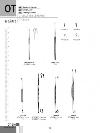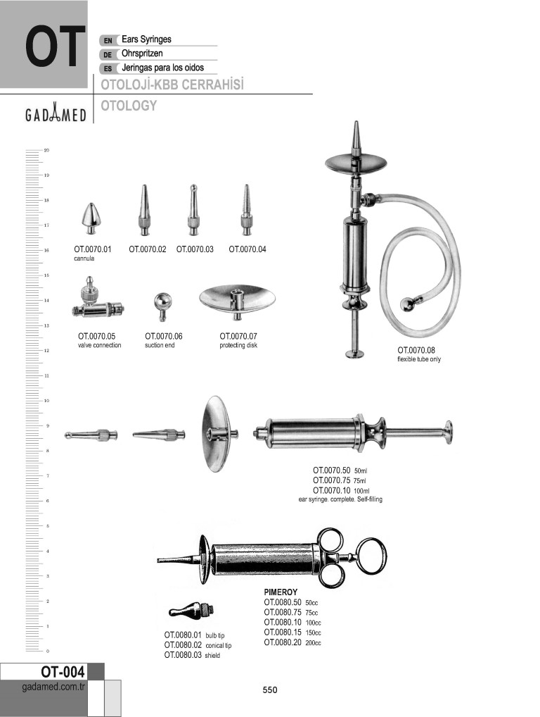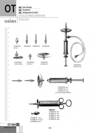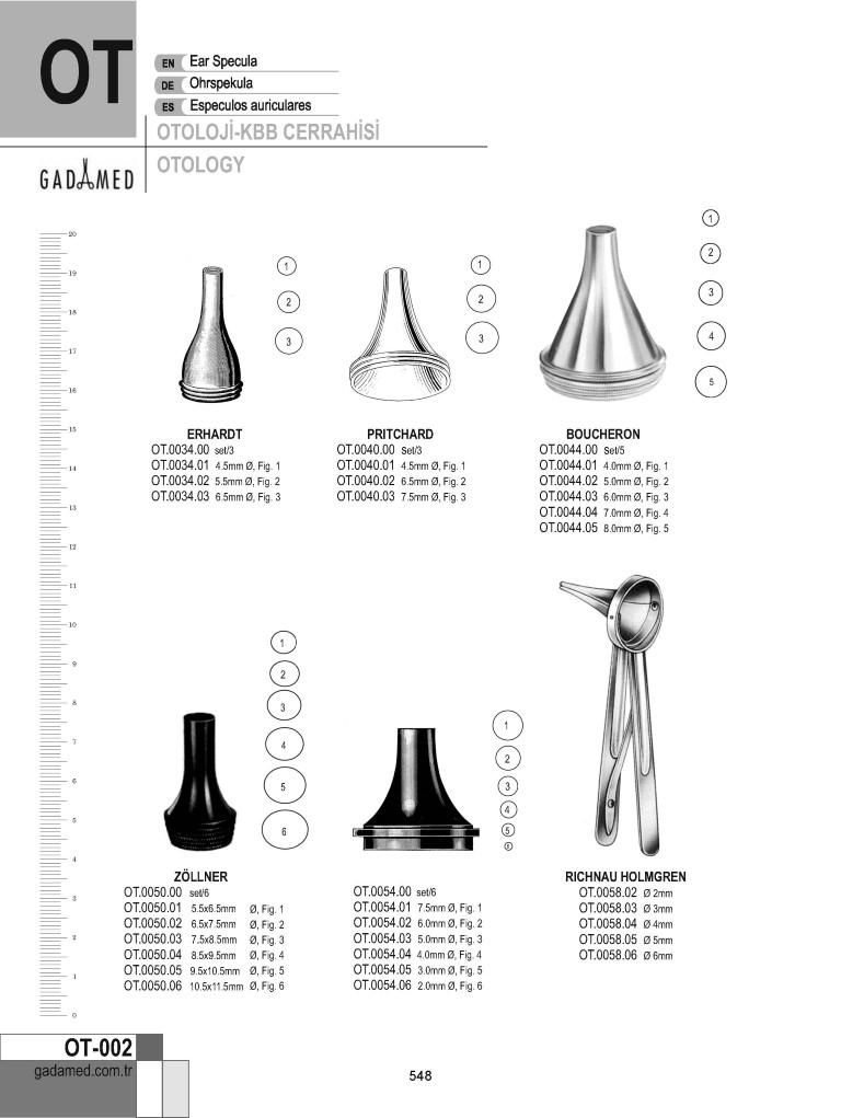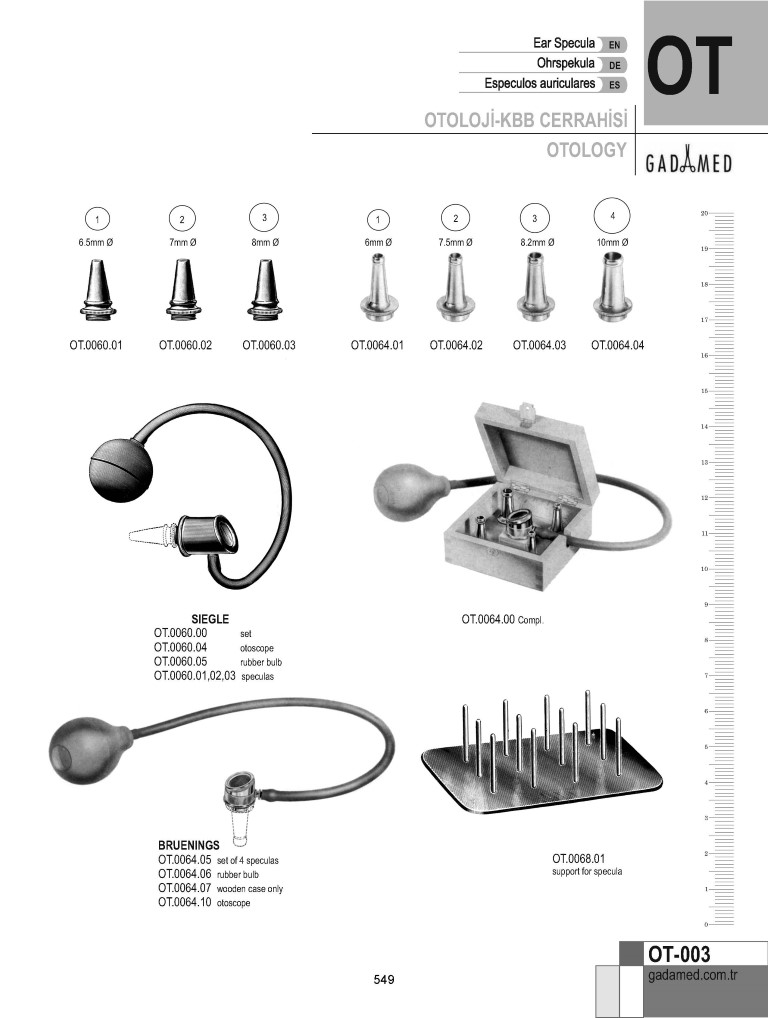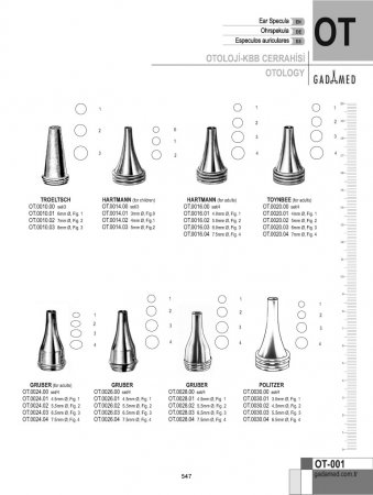 OT.0010.00 8681091062430 TROELTSCH KULAK SPEKULUMU 6MM~8MM SET/3 OT.0010.01 8681091062447 TROELTSCH KULAK SPEKULUMLARI 6MM ŞEK.1 OT.0010.02 8681091062454 TROELTSCH KULAK SPEKULUMLARI 7MM ŞEK.2 OT.0010.03 8681091062461 TROELTSCH KULAK SPEKULUMLARI 8MM ŞEK.3 OT.0014.00 8681091062478 HARTMANN KULAK SPEKULUMU 3MM~5.5MM SET/3 OT.0014.01 8681091062485 HARTMANN KULAK SPEKULUMU 3.0MM ŞEK.0 OT.0014.02 8681091062492 HARTMANN KULAK SPEKULUMU 4.5MM ŞEK.1 OT.0014.03 8681091062508 HARTMANN KULAK SPEKULUMU 5.5MM ŞEK.2 OT.0016.00 8681091062515 HARTMANN KULAK SPEKULUMLARI 4.5MM~7.5MM SET/4 OT.0016.01 8681091062522 HARTMANN KULAK SPEKULUMU 4.5MM ŞEK.1 OT.0016.02 8681091062539 HARTMANN KULAK SPEKULUMU 5.5MM ŞEK.2 OT.0016.03 8681091062546 HARTMANN KULAK SPEKULUMU 6.5MM ŞEK.3 OT.0016.04 8681091062553 HARTMANN KULAK SPEKULUMU 7.5MM ŞEK.4 OT.0020.00 8681091062560 HARTMANN KULAK SPEKULUMLARI 4MM~7MM SET/4 OT.0020.01 8681091062577 TOYNBEE KULAK SPEKULUMU 4.5MM OT.0020.02 8681091062584 TOYNBEE KULAK SPEKULUMU 5.5MM OT.0020.03 8681091062591 TOYNBEE KULAK SPEKULUMU 6.5MM OT.0020.04 8681091062607 TOYNBEE KULAK SPEKULUMU 7.5MM OT.0024.00 8681091062614 GRUBER KULAK SPEKULUMU OVAL SET/4 OT.0024.01 8681091062621 GRUBER KULAK SPEKULUMU OVAL 4.5MM OT.0024.02 8681091062638 GRUBER KULAK SPEKULUMU OVAL ŞEK.2, 5.5MM OT.0024.03 8681091062645 GRUBER KULAK SPEKULUMU OVAL ŞEK.3, 6.5MM OT.0024.04 8681091062652 GRUBER KULAK SPEKULUMU OVAL ŞEK.4, 7.5MM OT.0026.00 8681091062669 GRUBER KULAK SPEKULUMU YUVARLAK 4.5-7.5 MM, SET/4 OT.0026.01 8681091062676 GRUBER KULAK SPEKULUMU YUVARLAK 4.5MM, ŞEK.1 OT.0026.02 8681091062683 GRUBER KULAK SPEKULUMU YUVARLAK 5.5MM, ŞEK.2 OT.0026.03 8681091062690 GRUBER KULAK SPEKULUMU YUVARLAK 6.5MM, ŞEK.3 OT.0026.04 8681091062706 GRUBER KULAK SPEKULUMU YUVARLAK 7.5MM, ŞEK.4 OT.0028.00 8681091062713 GRUBER KULAK SPEKULUMU YUVARLAK 4.5-7.5 MM, SET/4 OT.0028.01 8681091062720 GRUBER KULAK SPEKULUMU YUVARLAK ŞEK.1, 4.5MM OT.0028.02 8681091062737 GRUBER KULAK SPEKULUMU YUVARLAK ŞEK.2, 5.5MM OT.0028.03 8681091062744 GRUBER KULAK SPEKULUMU YUVARLAK ŞEK.3, 6.5MM OT.0028.04 8681091062751 GRUBER KULAK SPEKULUMU YUVARLAK ŞEK.4, 7.5MM OT.0030.00 8681091062768 HARTMANN KULAK SPEKULUMU 3MM~6.5MM SET/3 OT.0030.01 8681091062775 POLITZER KULAK SPEKULUM 3MM, ŞEK.1 OT.0030.02 8681091062782 POLITZER KULAK SPEKULUMU 4.5MM, ŞEK.2 OT.0030.03 8681091062799 POLITZER KULAK SPEKULUMU 5.5MM, ŞEK.3 OT.0030.04 8681091062805 POLITZER KULAK SPEKULUMU 6.5MM, ŞEK.4 OT.0034.00 8681091062812 ERHARDT KULAK SPEKULUM 4.5MM~6.5MM SET/3 OT.0034.01 8681091062829 ERHARDT KULAK SPEKULUMU 4.5MM ŞEK.1 OT.0034.02 8681091062836 ERHARDT KULAK SPEKULUMU 5.5MM ŞEK.2 OT.0034.03 8681091062843 ERHARDT KULAK SPEKULUMU 6.5MM ŞEK.3 OT.0040.00 8681091062850 PRITCHARD KULAK SPEKULUMU 4.5MM~7.5MM SET/3 OT.0040.01 8681091062867 PRITCHARD KULAK SPEKULUMU 4.5MM ŞEK.1 OT.0040.02 8681091062874 PRITCHARD KULAK SPEKULUMU 6.5MM ŞEK.2 OT.0040.03 8681091062881 PRITCHARD KULAK SPEKULUMU 7.5MM ŞEK.3 OT.0044.00 8681091062898 BOUCHERON KULAK SPEKULUMU 4 MM-8 MM, SET/5 OT.0044.01 8681091062904 BOUCHERON KULAK SPEKULUMLARI 4.0MM OT.0044.02 8681091062911 BOUCHERON KULAK SPEKULUMLARI 5.0MM OT.0044.03 8681091062928 BOUCHERON KULAK SPEKULUMLARI 6.0MM OT.0044.04 8681091062935 BOUCHERON KULAK SPEKULUMLARI 7.0MM OT.0044.05 8681091062942 BOUCHERON KULAK SPEKULUMLARI 8.0MM OT.0050.00 8681091062959 ZOELLNER KULAK SPEKULUMU SET/6 SİYAH OT.0050.01 8681091062966 ZOELLNER KULAK SPEKULUMU 5.5X6.5MM, B/F ŞEK.1 OT.0050.02 8681091062973 ZOELLNER KULAK SPEKULUMU 6.5X7.5MM, B/F ŞEK.2 OT.0050.03 8681091062980 ZOELLNER KULAK SPEKULUMU 7.5X8.5MM, B/F ŞEK.3 OT.0050.04 8681091062997 ZOELLNER KULAK SPEKULUMU 8.5X9.5MM, B/F ŞEK.4 OT.0050.05 8681091063000 ZOELLNER KULAK SPEKULUMU 9.5X10.5MM, B/F ŞEK.5 OT.0050.06 8681091063017 ZOELLNER KULAK SPEKULUMU 10.5X11.5MM, B/F ŞEK.6 OT.0054.00 8681091063024 MARTIN ANTİREFLEKS KULAK SPEKULUMU SET/6 OT.0054.01 8681091063031 MARTIN ANTİREFLEKS KULAK SPEKULUMU 7.5MM ŞEK.1 OT.0054.02 8681090938316 MARTIN ANTİREFLEKS KULAK SPEKULUMU 6.0MM ŞEK.2 OT.0054.03 8681091063048 MARTIN ANTİREFLEKS KULAK SPEKULUMU 5.0MM ŞEK.3 OT.0054.04 8681091063055 MARTIN ANTİREFLEKS KULAK SPEKULUMU 4.0MM ŞEK.4 OT.0054.05 8681091063062 MARTIN ANTİREFLEKS KULAK SPEKULUMU 3.0MM ŞEK.5 OT.0054.06 8681091063079 MARTIN ANTİREFLEKS KULAK SPEKULUMU 2.0MM ŞEK.6 OT.0058.02 8681091063086 RICHNAU HOLMGREN KULAK SPEKULUMU/RET. 2MM OT.0058.03 8681091063093 RICHNAU HOLMGREN KULAK SPEKULUMU/RET. 3MM, ŞEK.0 OT.0058.04 8681091063109 RICHNAU HOLMGREN KULAK SPEKULUMU/RET. 4MM, ŞEK.1 OT.0058.05 8681091063116 RICHNAU HOLMGREN KULAK SPEKULUMU/RET. 5MM, ŞEK.2 OT.0058.06 8681091063123 RICHNAU HOLMGREN KULAK SPEKULUMU/RET. 6MM, ŞEK.3 OT.0060.00 8681091063130 SIEGLE KULAK PNÖMATİK SPEKULUMU SET/3 OT.0060.01 8681091063147 SADECE SIEGLE İÇİN KULAK SPEKULUMLARI 6.5MM OT.0060.02 8681091063154 SADECE SIEGLE İÇİN KULAK SPEKULUMLARI 7MM OT.0060.03 8681091063161 SADECE SIEGLE İÇİN KULAK SPEKULUMLARI 8MM OT.0060.04 8681091063178 YALNIZCA KULAK SPEKULUMLARI İÇİN SIEGLE OTOSKOP OT.0060.05 8681091063185 YALNIZCA SIEGLE SPEKULUMLARI İÇİN TÜPLÜ LASTİK KÜRE OT.0064.00 8681091063192 BRUENINGS KOMPLE KULAK SETİ OT.0064.01 8681091063208 BRUENINGS KULAK SPEKULUMLARI 6.0MM ŞEK.1 OT.0064.02 8681091063215 BRUENINGS KULAK SPEKULUMU 7.5MM ŞEK.2 OT.0064.03 8681091063222 BRUENINGS KULAK SPEKULUMLARI 8.2MM ŞEK.3 OT.0064.04 8681091063239 BRUENINGS KULAK SPEKULUMLARI 10.0MM ŞEK.4 OT.0064.05 8681091063246 BRUENİNG KULAK SPEKUMLARI SET/4 OT.0064.06 8681091063253 SADECE BRUENİNG SPEKULUMLARI İÇİN TÜPLÜ LASTİK KÜRE OT.0064.07 8681091063260 BRUENİNG KULAK SPEKULUMLARI SETİ İÇİN AHŞAP ÇANTA OT.0064.10 8681091063277 SADECE BRUENİNG OTOSKOP OT.0068.01 8681091063284 SPEKULUMLARI İÇİN METAL DESTEK OT.0070.01 8681091063291 KULAK ŞIRINGASI İÇİN METAL OLİV OT.0070.02 8681091063307 KULAK ŞIRINGASI İÇİN KONİK KANÜL OT.0070.03 8681091063314 KULAK ŞIRINGASI İ