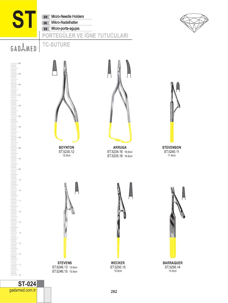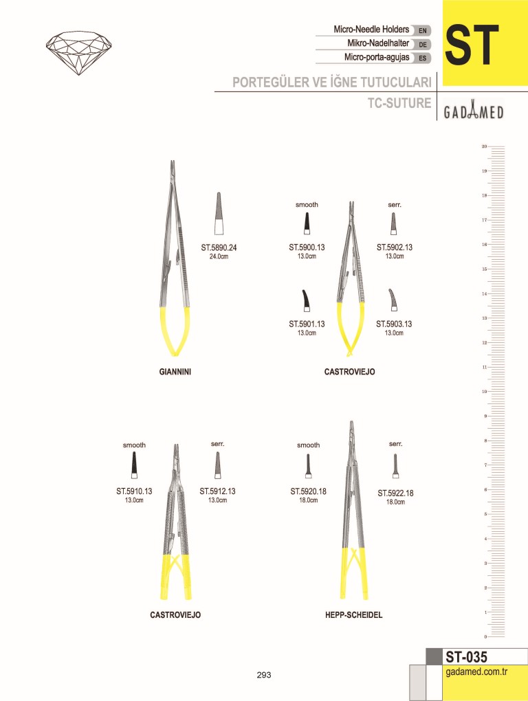 ST.0010.12 8681091034529 DERF PORTEGÜ 12CM ST.0012.12 8681091034536 DERF/CONVERSE PORTEGÜ; LONGİ. TIRTIKLI 12.5CM ST.0020.12 8681091034543 COLLIER PORTEGÜ 12.5CM ST.0024.13 8681091034550 WEBSTER PORTEGÜ, DÜZ 13CM ST.0026.13 8681091034567 WEBSTER PORTEGÜ, TIRTIKLI 13CM ST.0030.13 8681091034574 HALSEY PORTEGÜ, DÜZ 13CM ST.0032.13 8681091034581 HALSEY PORTEGÜ TIRTIKLI; KAN OLUĞU İLE, 13CM ST.0036.13 8681091034598 NEIVERT PORTEGÜ 13CM ST.0040.12 8681091034604 HEGAR BAUMGARTNER PORTEGÜ 12.5CM ST.0040.14 8681091034611 HEGAR BAUMGARTNER PORTEGÜ 14CM ST.0046.13 8681091034628 BROWN PORTEGÜ 13CM ST.0046.18 8681091034635 BROWN PORTEGÜ 18CM ST.0050.14 8681091034642 MAYO HEGAR PORTEGÜ 14CM ST.0050.15 8681091034659 MAYO HEGAR PORTEGÜ 15CM ST.0050.16 8681091034666 MAYO HEGAR PORTEGÜ 16CM ST.0050.18 8681091034673 MAYO HEGAR PORTEGÜ 18CM ST.0050.20 8681091034680 MAYO HEGAR PORTEGÜ 20CM ST.0050.22 8681091034697 MAYO HEGAR PORTEGÜ 22CM ST.0050.24 8681091034703 MAYO HEGAR PORTEGÜ 24CM ST.0050.26 8681091034710 MAYO HEGAR PORTEGÜ 26CM ST.0050.28 8681091034727 MAYO HEGAR PORTEGÜ 28CM ST.0050.30 8681091034734 MAYO HEGAR PORTEGÜ 30CM ST.0051.14 8681091034741 MAYO HEGAR PORTEGÜ KAVİSLİ 14CM ST.0051.15 8681091034758 MAYO HEGAR PORTEGÜ KAVİSLİ 15CM ST.0051.16 8681091034765 MAYO HEGAR PORTEGÜ KAVİSLİ 16CM ST.0051.18 8681091034772 MAYO HEGAR PORTEGÜ KAVİSLİ 18CM ST.0051.20 8681091034789 MAYO HEGAR PORTEGÜ KAVİSLİ 20CM ST.0051.22 8681091034796 MAYO HEGAR PORTEGÜ KAVİSLİ 22CM ST.0051.24 8681091034802 MAYO HEGAR PORTEGÜ KAVİSLİ 24CM ST.0051.26 8681091034819 MAYO HEGAR PORTEGÜ KAVİSLİ 26CM ST.0051.28 8681091034826 MAYO HEGAR PORTEGÜ KAVİSLİ 28CM ST.0051.30 8681091034833 MAYO HEGAR PORTEGÜ KAVİSLİ 30CM ST.0056.16 8681091034840 MAYO HEGAR PORTEGÜ, HASSAS 16CM ST.0056.18 8681091034857 MAYO HEGAR PORTEGÜ, HASSAS 18CM ST.0056.20 8681091034864 MAYO HEGAR PORTEGÜ, HASSAS 20CM ST.0060.15 8681091034871 CRILE MURRAY PORTEGÜ 15CM ST.0066.15 8681091034888 CRILE -WOOD PORTEGÜ 15CM ST.0066.18 8681091034895 CRILE-WOOD PORTEGÜ 18CM ST.0066.20 8681091034901 CRILE-WOOD PORTEGÜ 20CM ST.0070.20 8681091034918 HEGAR PORTEGÜ, TIRTIKLI 20CM ST.0070.24 8681091034925 HEGAR PORTEGÜ, TIRTIKLI 24CM ST.0072.20 8681091034932 HEGAR PORTEGÜ, OLUKLU 20CM ST.0072.24 8681091034949 HEGAR PORTEGÜ, OLUKLU 24CM ST.0076.18 8681091034956 ADSON PORTEGÜ 18CM ST.0080.21 8681091034963 HEANEY PORTEGÜ 21CM ST.0086.18 8681091034970 METZENBAUM PORTEGÜ 18CM ST.0090.26 8681091034987 MASSON LUETHY İPORTEGÜ 26CM ST.0096.18 8681091034994 SAROT PORTEGÜ 18CM ST.0096.26 8681091035007 SAROT PORTEGÜ 26CM ST.0100.20 8681091035014 WERTHEİM PORTEGÜ 20CM ST.0100.24 8681091035021 WERTHEİM PORTEGÜ 24CM ST.0106.23 8681091035038 STRATTE PORTEGÜ 23CM ST.0110.12 8681091035045 BRUCE CLARK PORTEGÜ 12.5CM ST.0116.13 8681091035052 KILNER PORTEGÜ 13.5CM ST.0116.16 8681091035069 KILNER PORTEGÜ 16.5CM ST.0120.20 8681091035076 THOMSON WALKER PORTEGÜ S/J 20CM ST.0126.20 8681091035083 BOZEMAN PORTEGÜ S/J 20CM ST.0126.24 8681091035090 BOZEMAN PORTEGÜ S/J 24CM ST.0130.27 8681091035106 JOHNSON PORTEGÜ 27CM ST.0136.18 8681091035113 FINOCHIETTO PORTEGÜ 18CM ST.0136.20 8681091035120 FINOCHIETTO PORTEGÜ 20CM ST.0136.27 8681091035137 FINOCHIETTO PORTEGÜ 27CM ST.0140.27 8681091035144 MASSON PORTEGÜ 27CM ST.0144.27 8681091035151 WAÇI.ENSTEEN PORTEGÜ 27CM ST.0146.27 8681091035168 WAÇI.ENSTEEN PORTEGÜ, DAR 27CM ST.0150.23 8681091035175 JAMISON PORTEGÜ 23.5CM ST.0156.17 8681091035182 M.G.H. MASS GENERAL HOSPİTAL PORTEGÜ 17CM ST.0160.16 8681091035199 GILLIES PORTEGÜ, SAĞ EL TİPİ 16CM ST.0161.16 8681091035205 BROWN PORTEGÜ 16CM "SOL EL" ST.0170.14 8681091035212 OLSEN HEGAR PORTEGÜ 14CM ST.0171.14 8681091035229 OLSEN - HEGAR PORTEGÜ, KAN OLUĞU İLE 14CM ST.0172.17 8681091035236 OLSEN - HEGAR (BRYAN) PORTEGÜ 17CM ST.0174.17 8681091035243 OLSEN - HEGAR PORTEGÜ 17CM ST.0176.14 8681091035250 OLSEN - HEGAR PORTEGÜ 14CM ST.0176.18 8681091035267 OLSEN - HEGAR PORTEGÜ 18CM ST.0180.15 8681091035274 CRILE PORTEGÜ 15CM ST.0186.18 8681091035281 TOENNIS PORTEGÜ 18CM ST.0190.20 8681091035298 LİCHTENBERG PORTEGÜ 20CM ST.0196.14 8681091035304 MACPHAIL PORTEGÜ, BAKIR KISKAÇ 14CM ST.0196.16 8681091035311 MACPHAIL PORTEGÜ, BAKIR KISKAÇ 16CM ST.0196.18 8681091035328 MACPHAIL PORTEGÜ, BAKIR KISKAÇ 18CM ST.0196.20 8681091035335 MACPHAIL PORTEGÜ, BAKIR KISKAÇ 20CM ST.0200.14 8681091035342 MATHIEU PORTEGÜ 14CM ST.0200.17 8681091035359 MATHIEU PORTEGÜ 17CM ST.0200.20 8681091035366 MATHIEU PORTEGÜ 20CM ST.0200.24 8681091035373 MATHIEU PORTEGÜ 24CM ST.0202.14 8681091035380 MATHIEU PORTEGÜ, OLUKLU ÇENE, 14CM ST.0202.17 8681091035397 MATHIEU PORTEGÜ 17CM ST.0202.20 8681091035403 MATHIEU PORTEGÜ 20CM ST.0202.24 8681091035410 MATHIEU PORTEGÜ 24CM ST.0204.14 8681091035427 MATHIEU PORTEGÜ HASSAS TİP 14CM ST.0204.17 8681091035434 MATHIEU PORTEGÜ HASSAS TİP 17CM ST.0206.17 8681091035441 MATHIEU PORTEGÜ 17CM ST.0206.20 8681091035458 MATHIEU PORTEGÜ 20CM ST.0210.16 8681091035465 BARRAQUER PORTEGÜ, DELİKLİ SAP İLE 16CM ST.0214.14 8681091035472 ARRUGA MİKRO PORTEGÜ DÜZ 14CM ST.0215.14 8681091035489 ARRUGA MİKRO PORTEGÜ KAVİSLİ 14CM ST.0220.14 8681091035496 KALT PORTEGÜ 14CM ST.0224.14 8681091035502 KALT ARRUGA PORTEGÜ 14CM ST.0226.13 8681091035519 CASTROVİEJO KALT PORTEGÜ 13.5CM ST.0230.12 8681091035526 BOYNTON PORTEGÜ 12CM ST.0234.16 8681091035533 ARRUGA PORTEGÜ 16CM ST.0235.16 8681091035540 ARRUGA PORTEGÜ KAVİSLİ 16CM ST.0240.11 8681091035557 STEVENSON PORTEGÜ 11CM ST.0246.13 8681091035564 STEVENS PORTEGÜ 13CM ST.0246.15 8681091035571 STEVENS PORTEGÜ 15CM ST.0250.15 8681091035588 WECKER MİKRO PORTEGÜ 15CM ST.0256.14 8681091035595 BARRAQUER PORTEGÜ, TIRTIKLI 14CM ST.0260.09 8681091035601 CASTROVIEJO MİKRO PORTEGÜ DÜZ 9CM ST.0261.09 8681091035618 CASTROVIEJO MİKRO PORTEGÜ KAVİSLİ 9CM ST.0262.09 8681091035625 YAKALAYICI İLE CASTROVİEJO MİKRO PORTEGÜ 9CM ST.0262.14 8681091035632 YAKAL